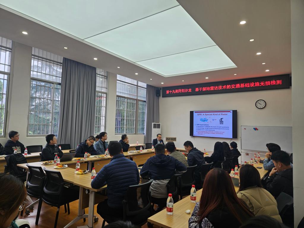 2025年11月24日上午,交通土建工程材料国家地方联合工程研究中心(以下简称“中心”)联合材料科学与工程学院、土木工程学院举办了以“交通基础设施无损检测”为主题的第十九期“阡陌沙龙”学术活动。本期沙龙邀请了香港理工大学冷真教授进行交流,中心常务副主任朱洪洲教授以及相关学科的教师和研究生参加了本期沙龙。沙龙由朱洪洲教授主持。